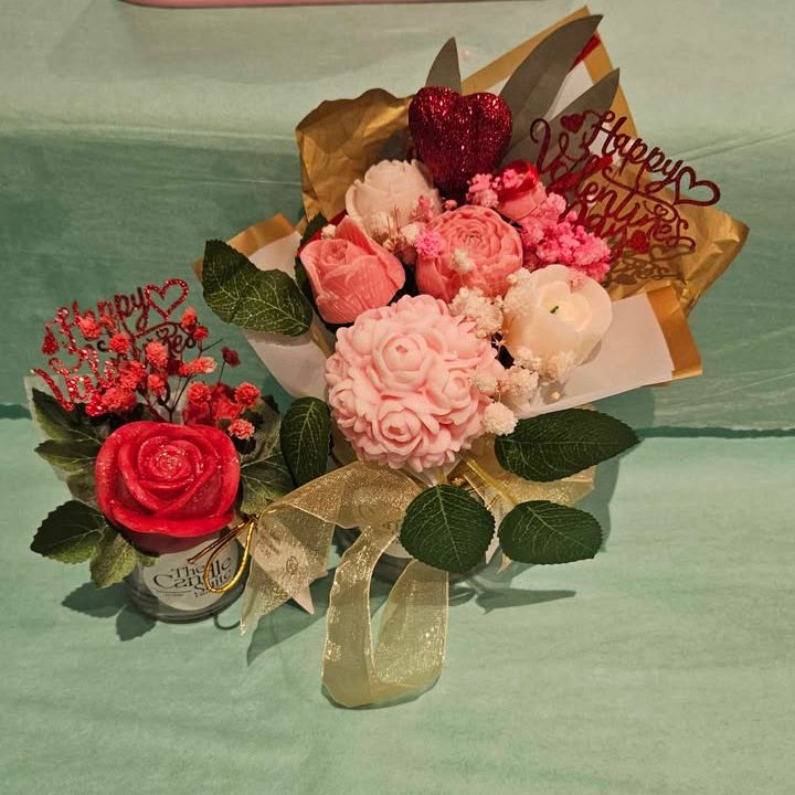 Wax melt and canlde Flower Bouquets in different sizes along with trinket trays and melters.