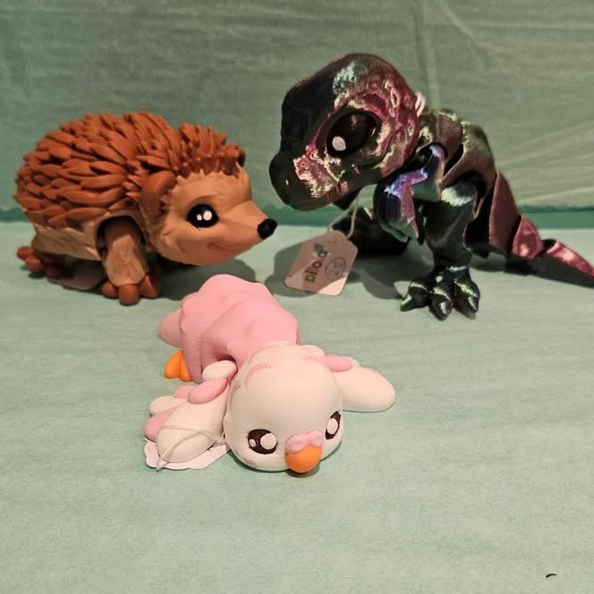Articulated 3D printed models of dragons and other creatures with hand painted details.