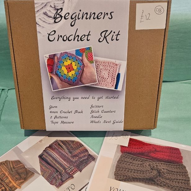 Beginners granny square crochet kits and patterns for ear warmers, cardigans and more..