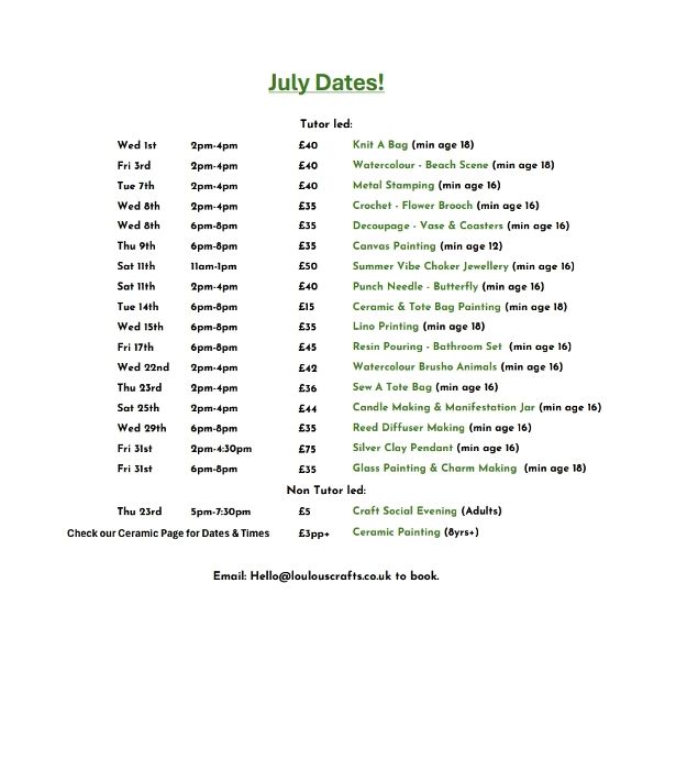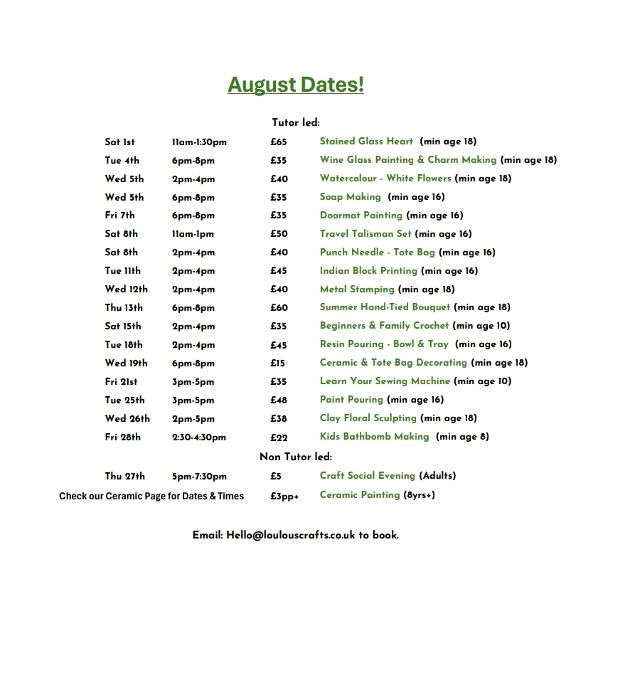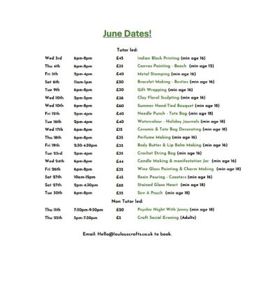 Come join and create something truly your own, no experience needed and everything is supplied.