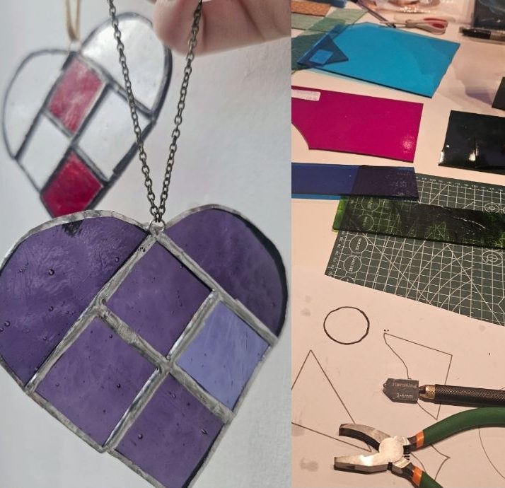 Artist guided workshop where you will learn the basics of copperfoil stained glass making and create your own decoration. Learn how to cut, grind, foil and solder glass before creating your own beautiful piece to display in your home.