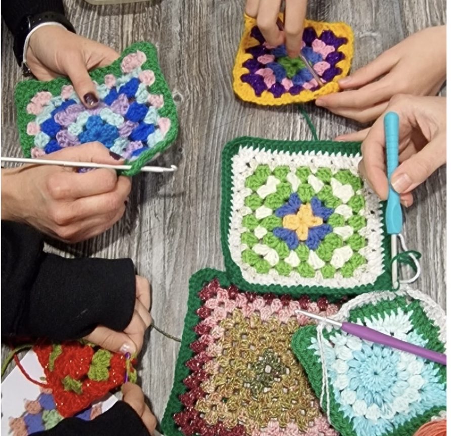Artist guided workshop, where you will learn to make a Granny Square to start your own blanket/cushion/cover or bag.